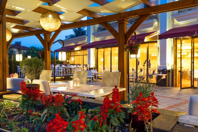 Луксозния ресторант–градина Ландмарк Крийк предлага на гостите гастрономически шедьоври, отбрани напитки, приятна музика и изискана обстановка.