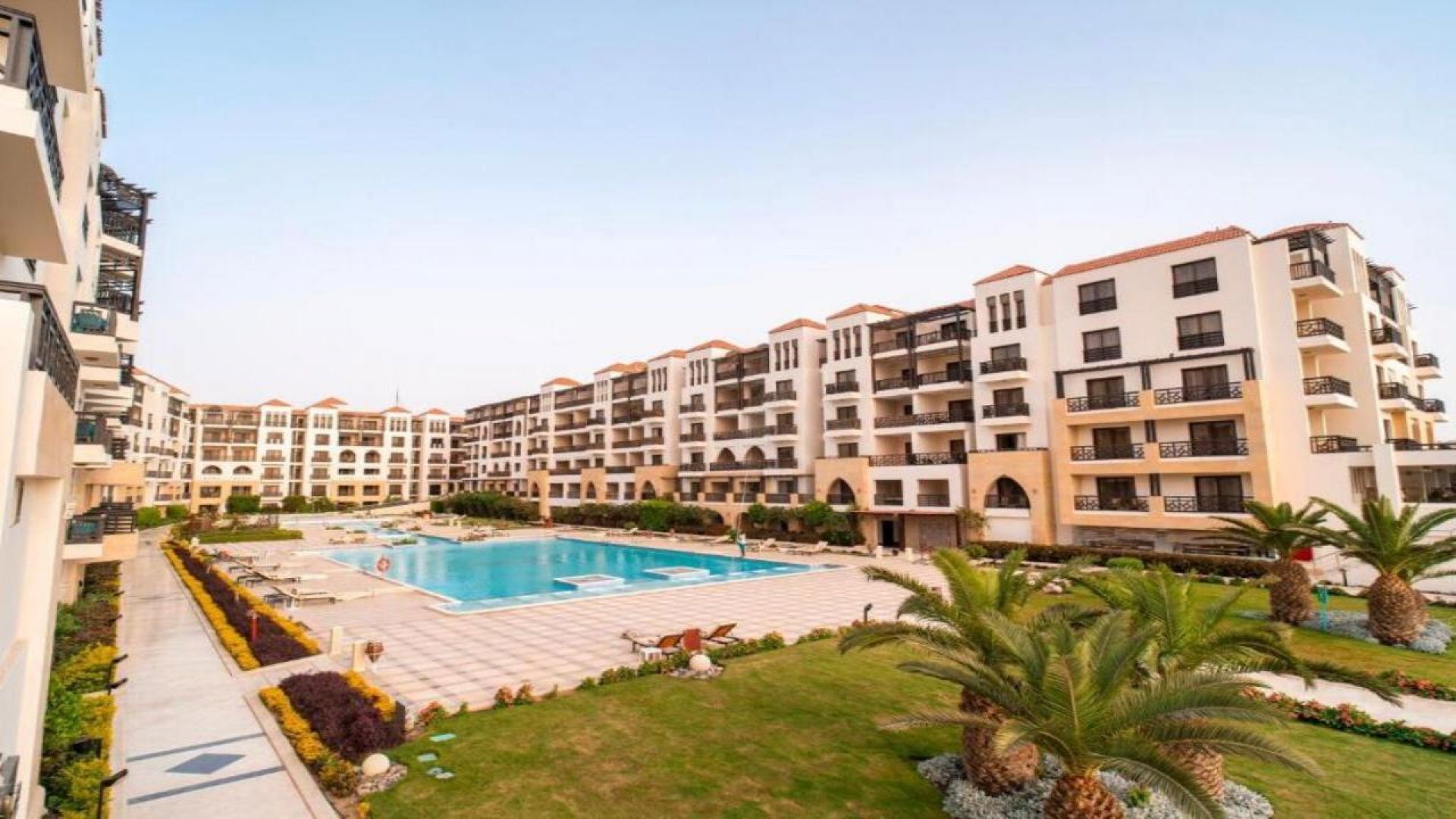 Комплексът е построен в арабски стил с модерно обзаведени стаи.