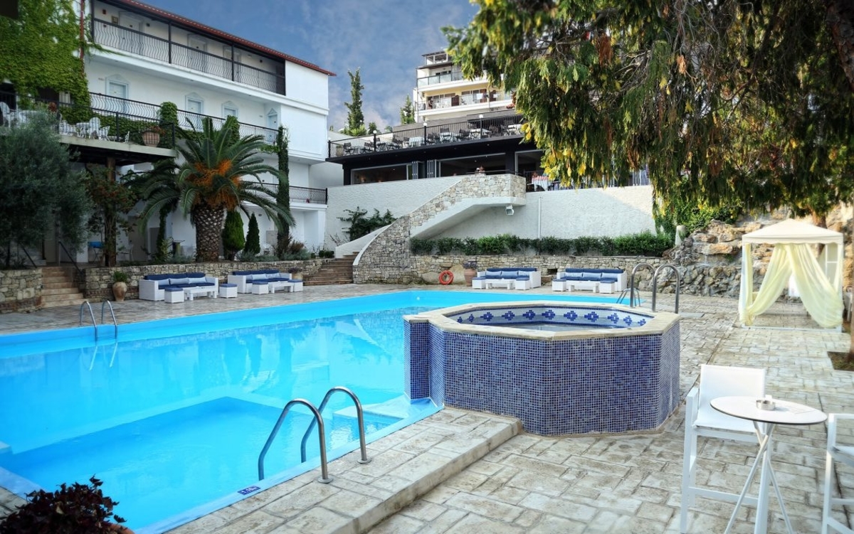 В хотела: ресторант, открит басейн с бар, традиционно гръцко кафене, тераса, фитнес зала.Хотелът предлага безплатни шатъл или влакче до плажа на Криопиги (от 09.00 до 18.00 ч. на всеки час).