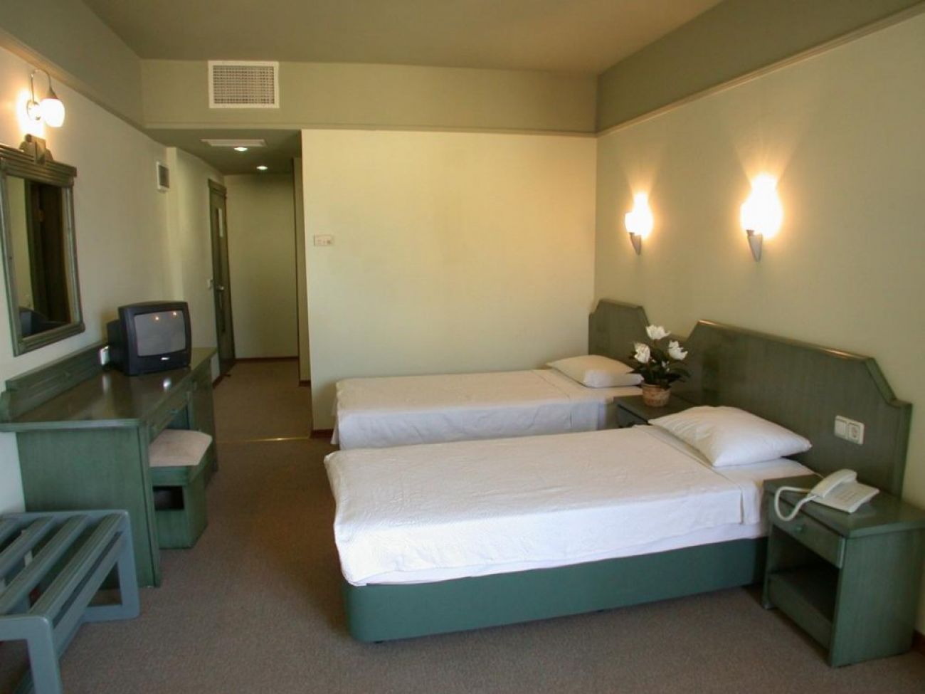Хотелът разполага общо с 208 стаи с площ, разпределени в общо в 3 блока. Всички стаи са оборудвани с климатик, телевизор, телефон, баня с душ, сешоар, балкон. Почистване на стаите – всеки ден, смяна на спалното бельо и кърпите – 2 пъти в седмицата.