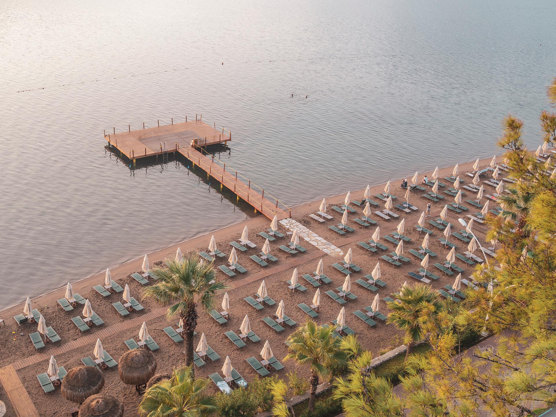 Собствен, пясъчен – чадъри и шезлонги на плажа и при басейна – безплатно, плажни кърпи - срещу депозит.