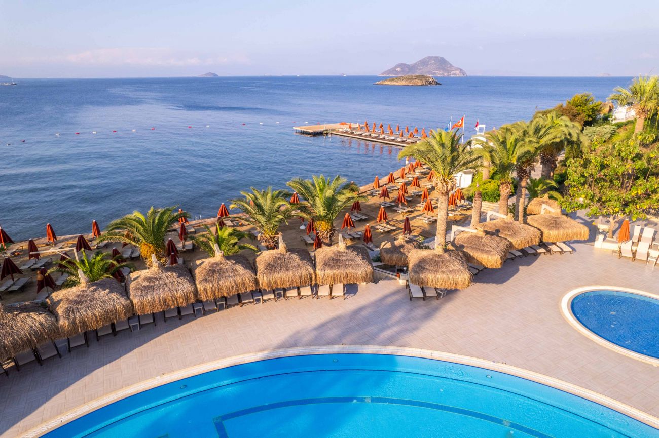 Намира се на 50 км от летище Бодрум, на 20 км от центъра на Бодрум, на 3 км от центъра на Тургутрейс, на брега на морето. Построен 1989 г., на обща площ от 36 000 м². Реновиран 2017 г.