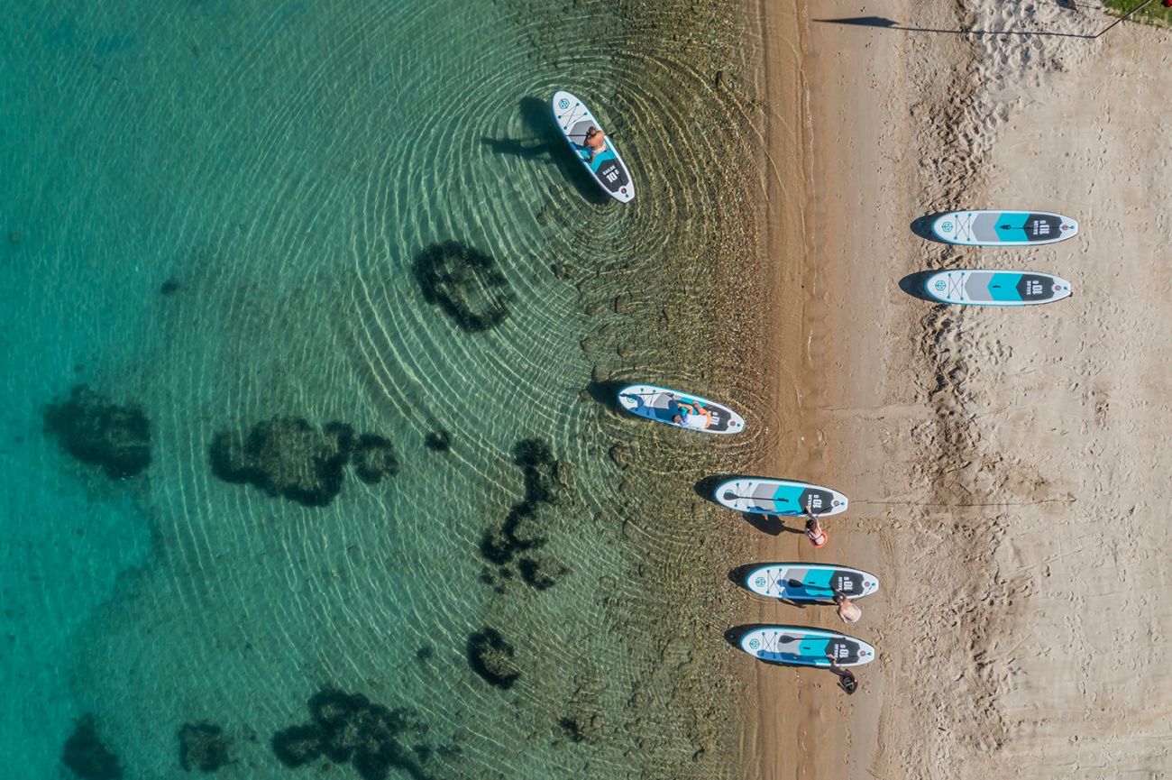 Собствен, пясъчен плаж със Син флаг и дължина от 200 м и платформа 500 m² - чадъри, шезлонги и матраци на плажа и при басейна – безплатно, плажни кърпи – срещу депозит. Частна платформа само за гости на вилите 80 m². И двете платформи са Adults Only. Кабани на плажа срещу допълнително заплащане.