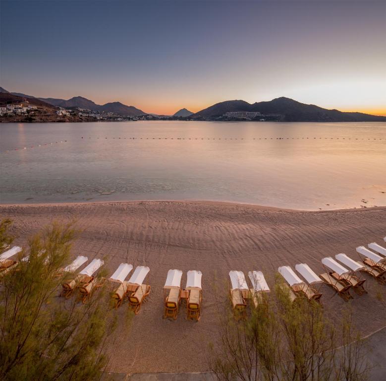 Хотелът е разположен на 65 км от летището и на 25 км от центъра на Бодрум, в района на Акярлар, в близост до Тургутрейс, на брега на морето. Разполага с обща площ 55,000 m².