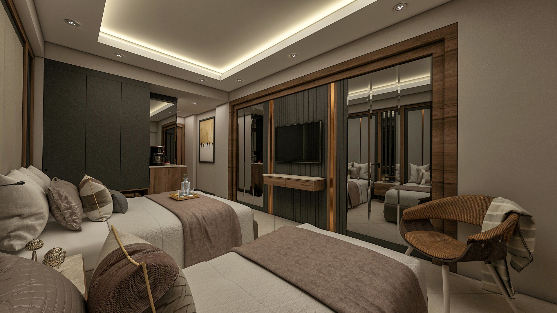 Хотелът разполага с 338 стаи, разпределени в 2 блока - 94 стандартни стаи с изглед градина (20 кв.м.), 95 стандартни стаи с изглед море (25 кв.м.), 20 фамилни стаи с изглед море (две свързани стаи, 35 кв.м.), 3 стаи за инвалиди (25 кв.м.) и промо стаи (без тераси), 37 стандартни стаи (25 кв.м.),11 лукс стаи с директен достъп до басейна (две свързани стаи, 40 кв.м.), 16 дуплекс лукс фамилни стаи (две свързани стаи, 39 кв.м.), 57 лукс фамилни стаи (две свързани стаи, 42 кв.м.), и 3 делукс суита (две свързани стаи, голяма тераса с джакузи, 61 кв.м.). Всички стаи са оборудвани с климатик, телевизор, телефон, баня с душ, сешоар, сет за чай/кафе, мини бар (платен), сейф (платен), балкон. Почистване на стаите - всеки ден, смяна на спалното бельо - 3 пъти седмично, смяна на кърпите - 3 пъти седмично.