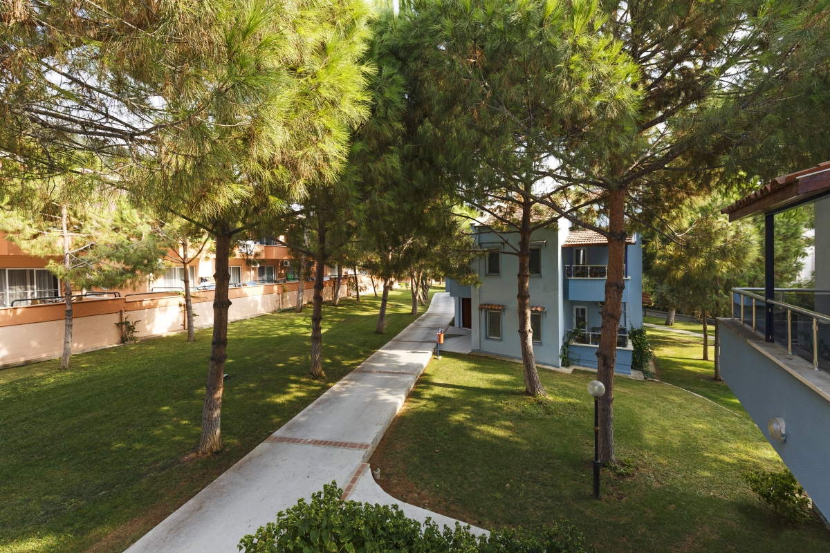 Намира се на 70 км от летище Измир, на 130 км от летище Милас, на 4 км от центъра на Кушадасъ, на 50 м от брега на морето. Построен през 1998 г., поетапно разширяван в периода 2004-2008 г., с обща площ 170 000 м², където тюркоазено синьото на Егейско море се слива с огромна гора от борови дървета с красиви цветя. BUNGALOW GARDEN ROOMS са реновирани през 2014 г., SUPERIOR ROOMS са реновирани през 2021 г. , FAMILY ROOMS през 2022 г.