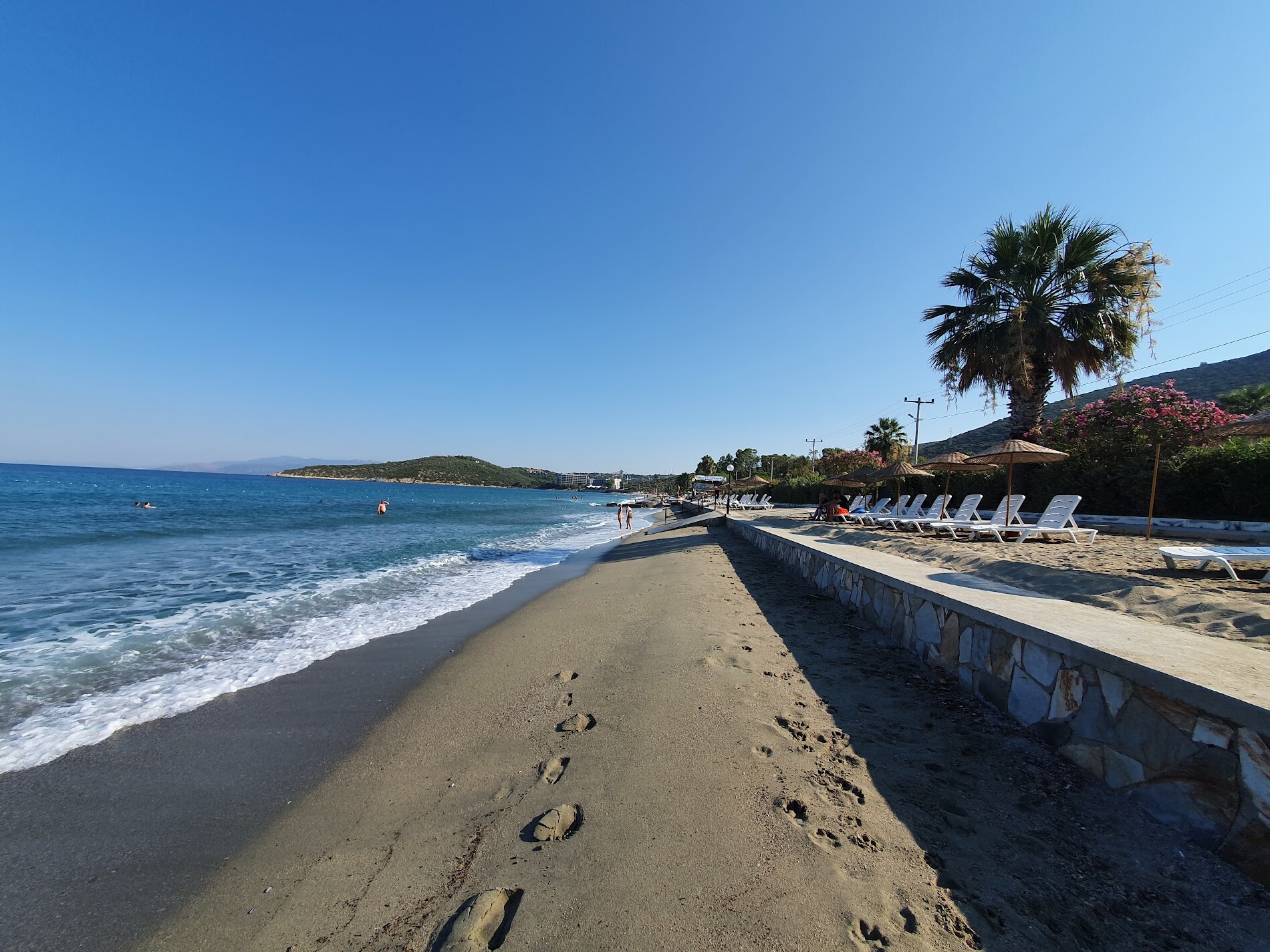 Собствен, пясъчен, притежаващ сертификат "Син флаг", на 50 м от хотела (преминаване през подлез на хотела).Чадъри, шезлонги, матраци и плажни кърпи на плажа и при басейна – безплатно. Бар на плажа от 09:00 до 17:30 часа (безплатни топли и студени напитки, бира).