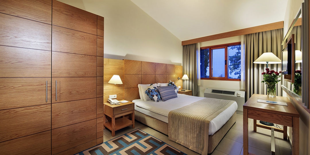 Хотелска част (девететажна сграда) с общо 320 стаи, от които: стандартни стаи с изглед градина (25 м²), с частичен изглед море (30 м²) и с изглед море (25 м²), супериор стаи с изглед море (40 м²), джуниър стаи с изглед градина (1 спалня - 31 м²), фамилни стаи с изглед градина (2 спални, 1 баня - 43 м²), стандарт суит (1 спалня, всекидневна, 1 баня - 50 м²), супериор суит (2 спални, всекидневна с кухненски бокс, 3 бани -119 м²), бизнес суит (1 спалня, всекидневна - 166 м²), стандарт суит с тераса (1 спалня, 1 баня, тераса с джакузи - 40 м²), стандарт суит с градина и тераса (1 спалня, всекидневна, 2 бани, градина с джакузи - 54 м²), супериор суит с басейн (2 спални, всекидневна, 2 бани, тераса с джакузи и басейн - 147 м²),