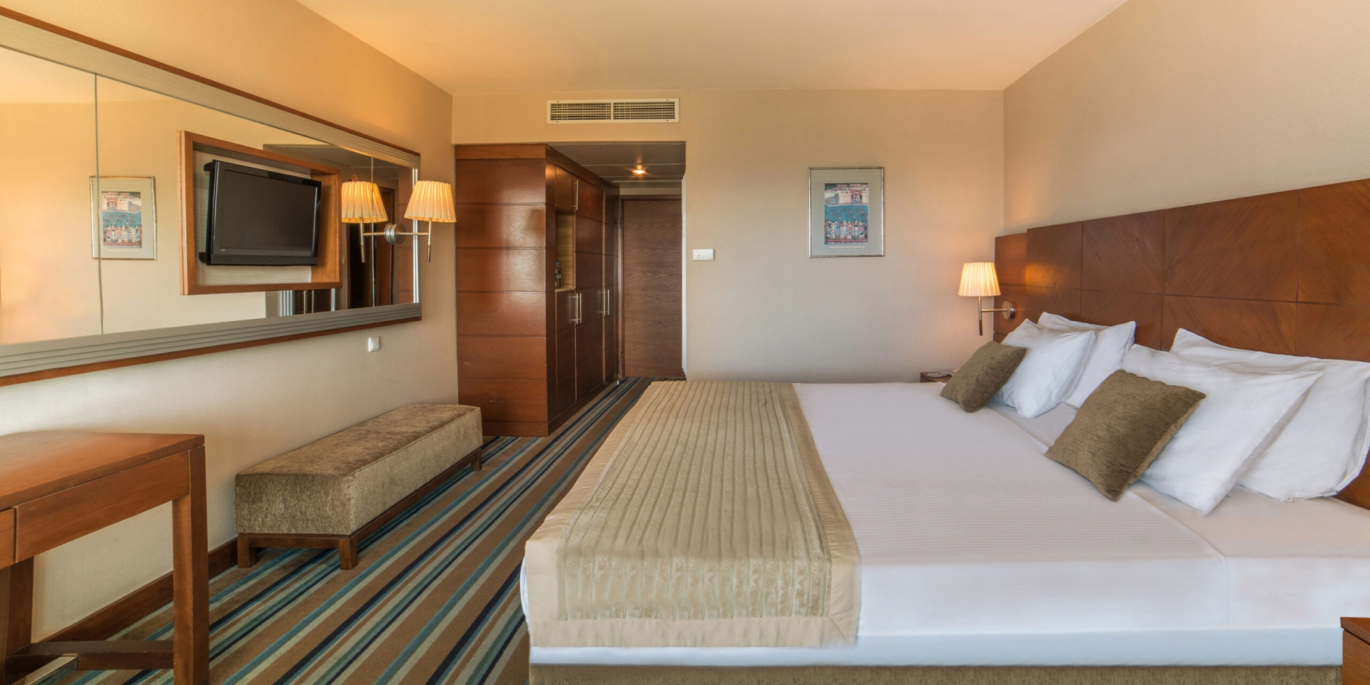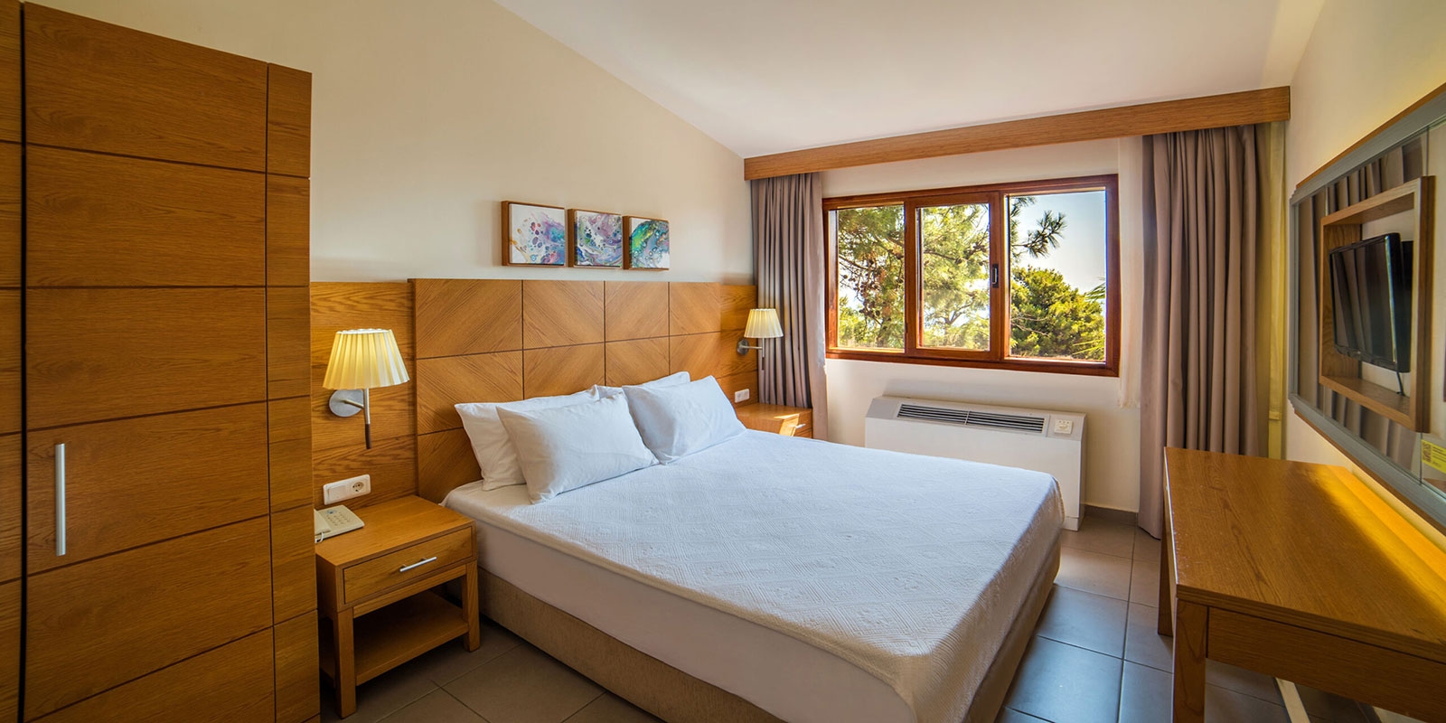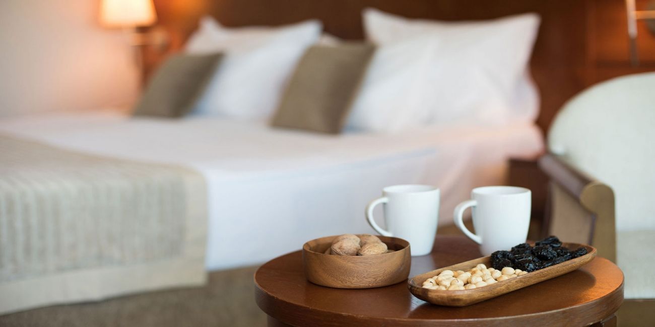 Всички стаи са оборудвани с климатик, телевизор, телефон, баня с душ/вана, сешоар, сет за чай/кафе, минибар ( вода и безалкохолни напитки - безплатно), сейф (безплатен), балкон или тераса. Почистване на стаите и смяна на кърпите - всеки ден. Смяна на спалното бельо - 3 пъти седмично.