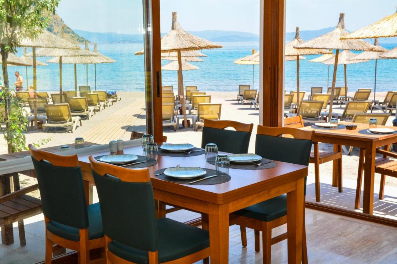 Собствен пясъчен плаж. Чадъри и шезлонги на плажа и при басейна - безплатно. Кабани на плажа - срещу допълнително заплащане.