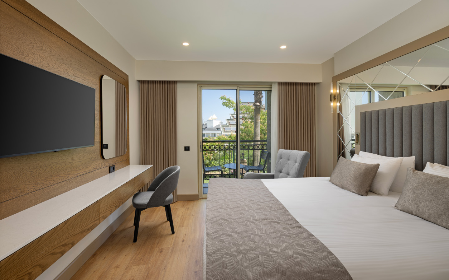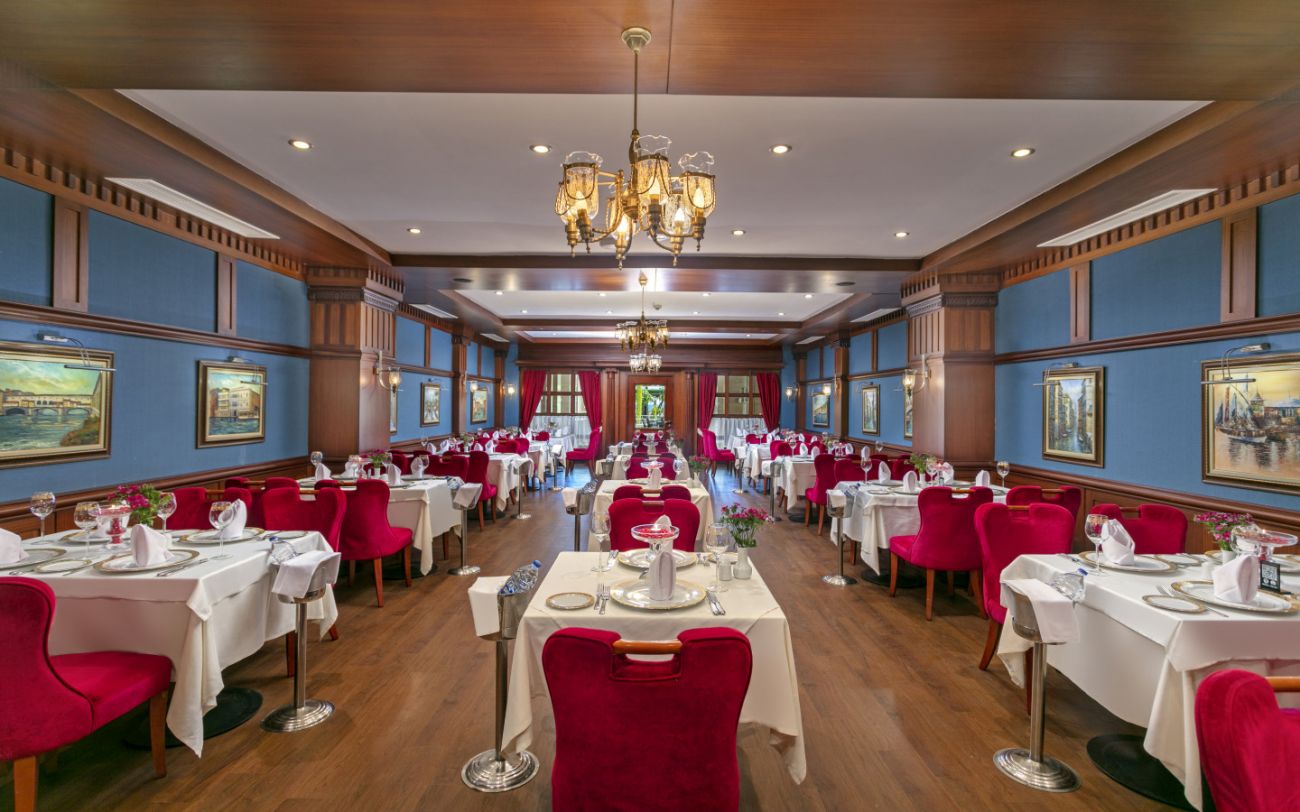 Хотелът разполага с общо 328 стаи, от които 262 стандартни стаи, 64 фамилни стаи и 2 кралски апартамента. Всички стаи са оборудвани с: централен климатик, сателитна телевизия, телефон, безжичен интернет, баня с вана, сешоар, мини бар – зарежда се ежедневно с вода, безалкохолни и бира, сейф, балкон. Почистване на стаите и смяна на кърпите – всеки ден, смяна на бельото – 3 пъти в седмицата.