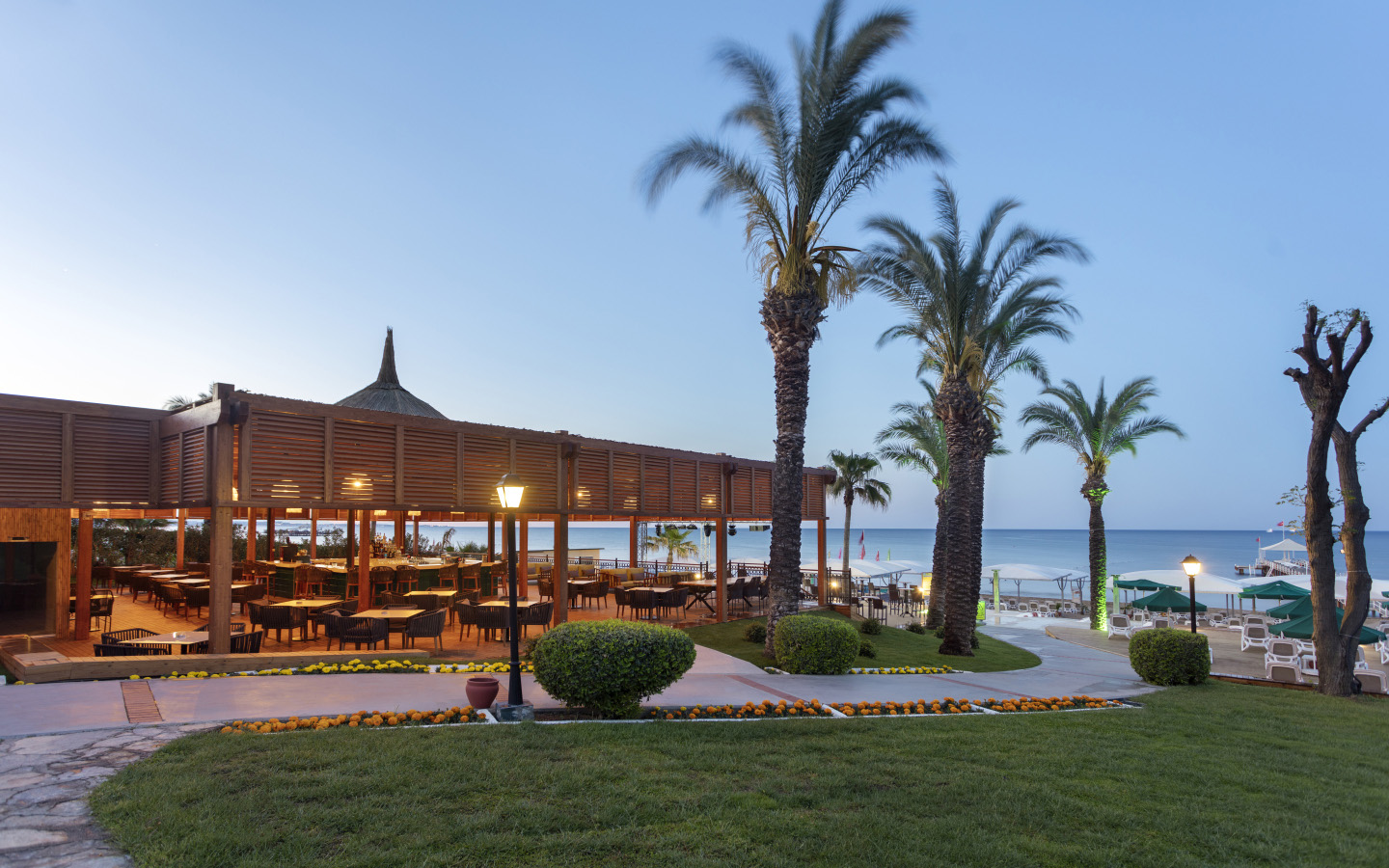 ПЛАЖ: Собствен, пясъчен на 100 м. от хотела и пирс. Бар на плажа. Чадъри, шезлонги и матраци на плажа и при басейна – безплатно, плажни кърпи – безплатно.