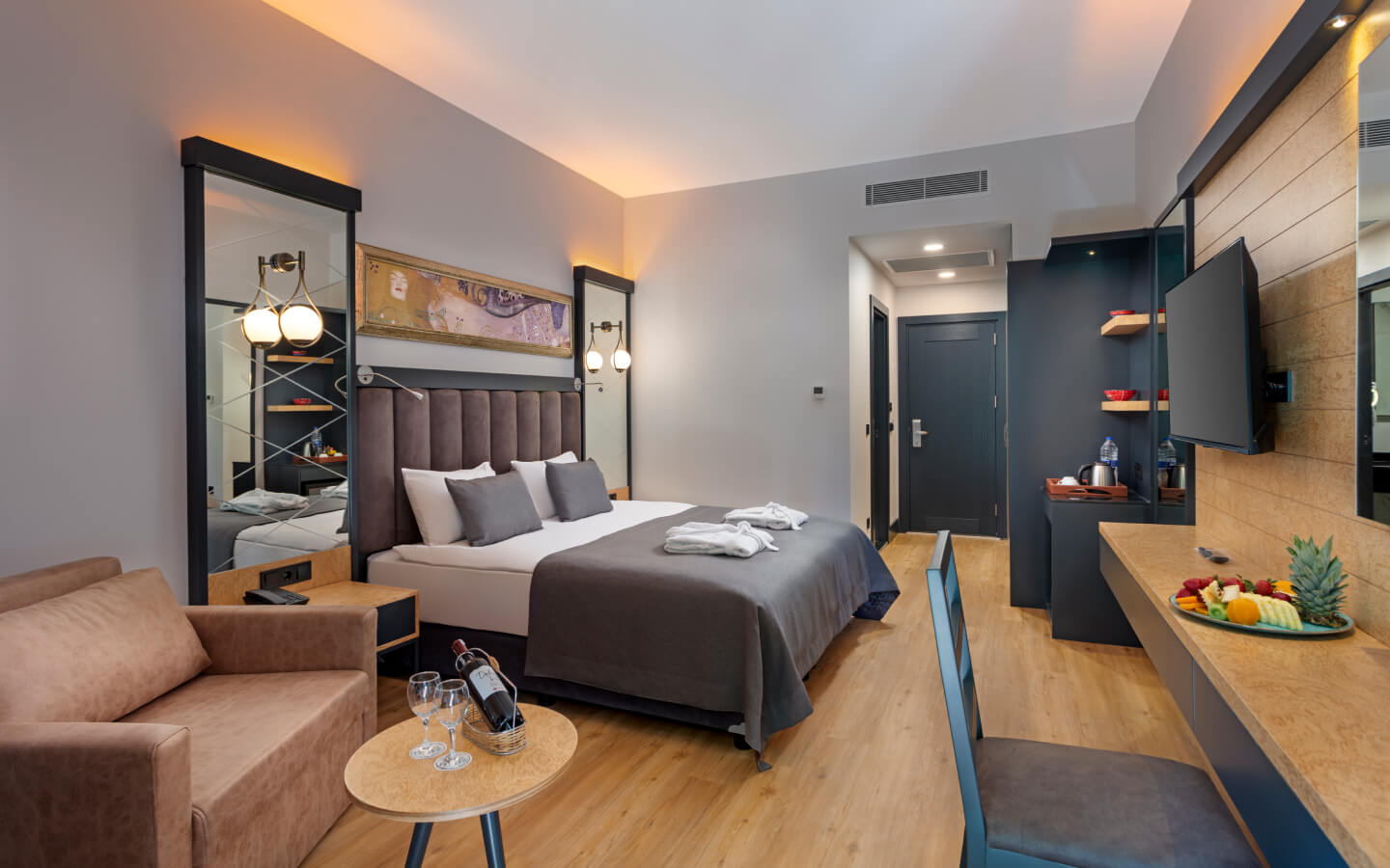 - Стаи тип PROMO и ECONOMY са с по-ниска цена. Те са с по-малък размер от стандартните стаи, с крайно местоположение на територията на хотела, на приземен етаж, без балкон или тераса, с малка баня и различно обзавеждане.