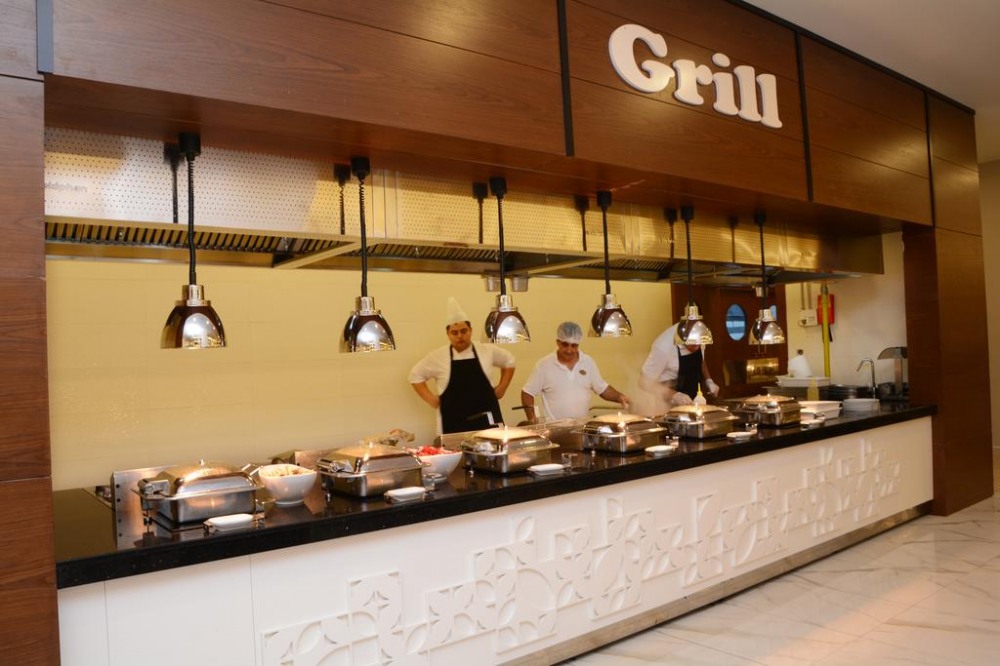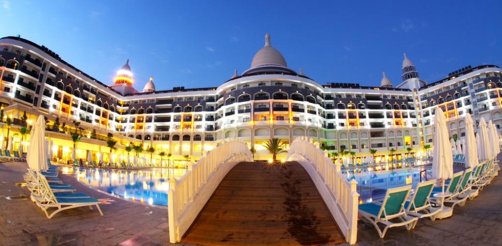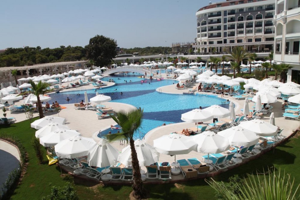 Основен ресторант, 2 а - ла - карт ресторанта, 2 снек бара, 7 бара, бистро, сладкарница, 2 открити и 1 закрит басейн, водни пързалки, дискотека, амфитеатър, нощен клуб, магазини, конферентни зали. За децата: Открит и закрит басейн, водни пързалки, анимация, мини клуб (4-12), мини диско. Безплатни услуги: Сауна, турска баня, парна баня, фитнес (16+), аеробика, дартс, боча, водна гимнастика, тенис на маса, плажен волейбол, анимация, WiFi(в лоби). Платени услуги: Масаж, фризьор, лекар, химическо чистене, билярд, електронни игри, рент-а-кар, водни спортове.