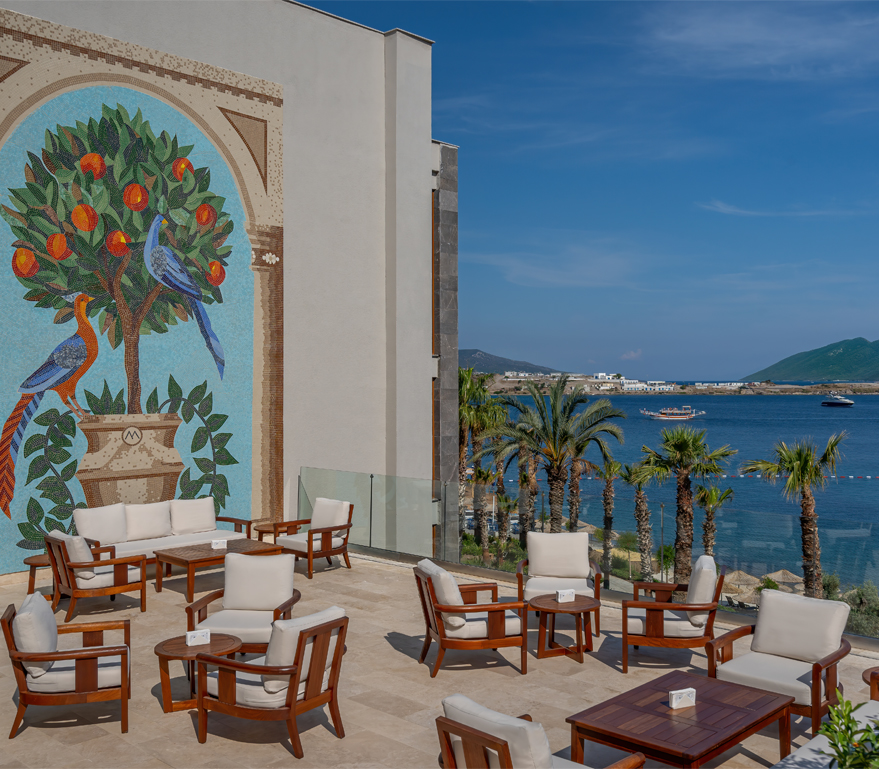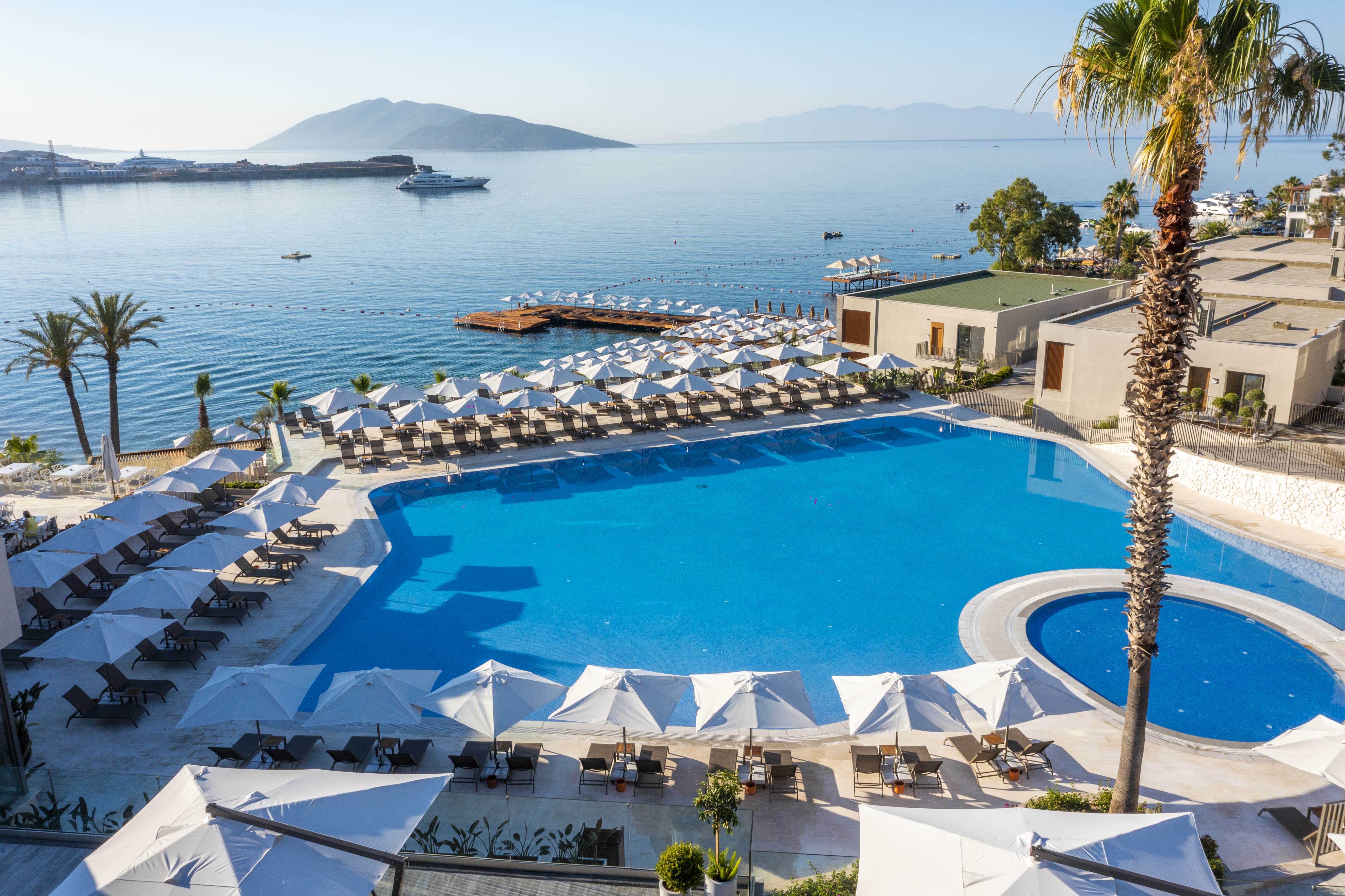 Хотелът се намира на 45 км от летище Милас, на 3 км от центъра на Бодрум, в района на Гюмбет. Изцяло реновиран през 2022 г. Разположен върху площ от 38,000 m².
