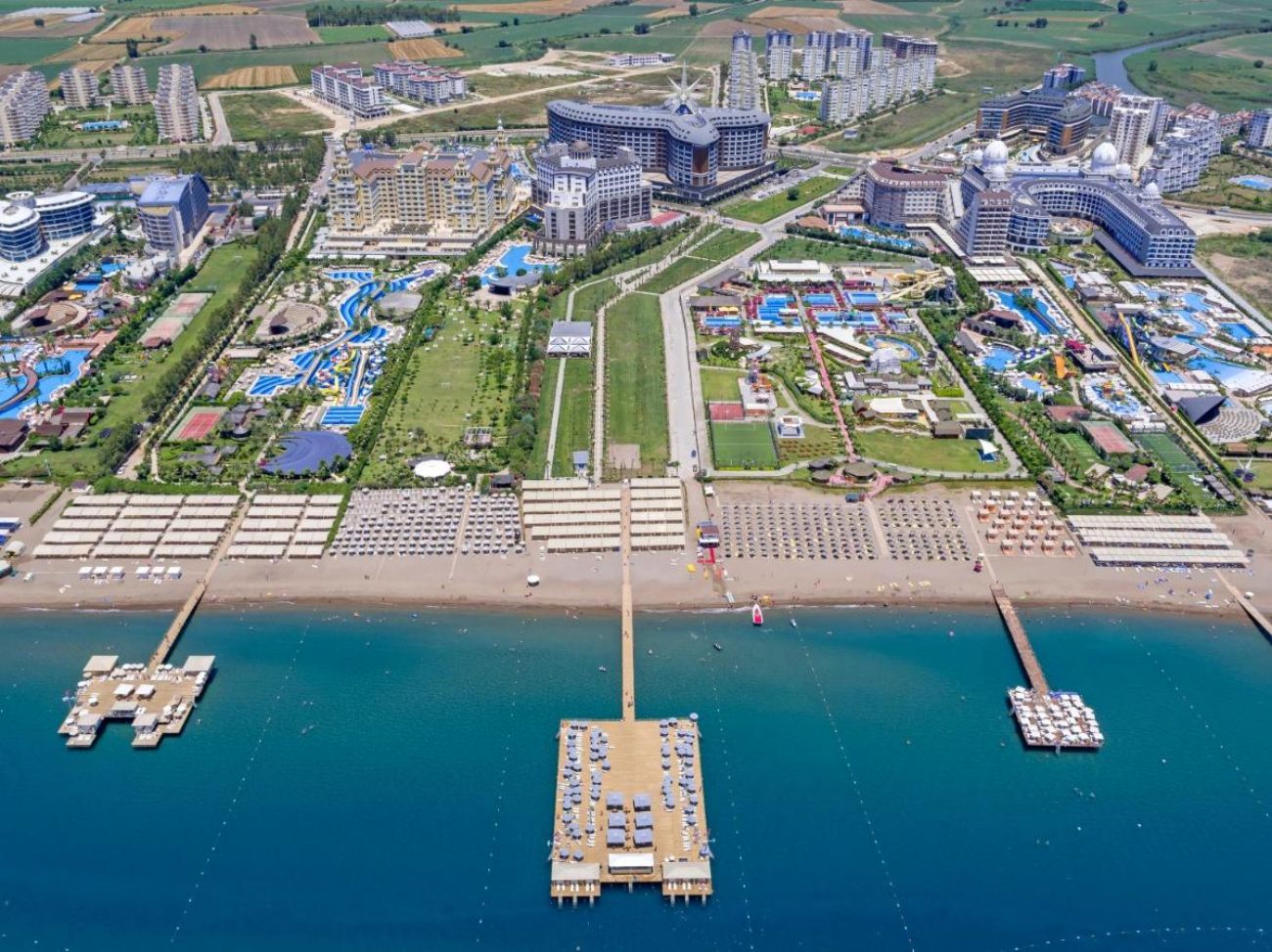Основен ресторант, 9 а-ла-карт ресторанта (рибен, турски, италиански, средиземноморски, азиатски, суши, барбекю ресторант, мексикански, испански – срещу заплащане и с предварителна резервация, съгласно концепцията на хотела), снек ресторанти, бистро, сладкарница, food корнер, 9 бара, 4 открити и 1 закрит басейн, аквапарк, лунапарк, амфитеатър, професионални музикални и танцови вечерни програми, тематични партита(1 път седмично), дискотека, СПА център, магазини, 11 конферентни зали, паркинг.