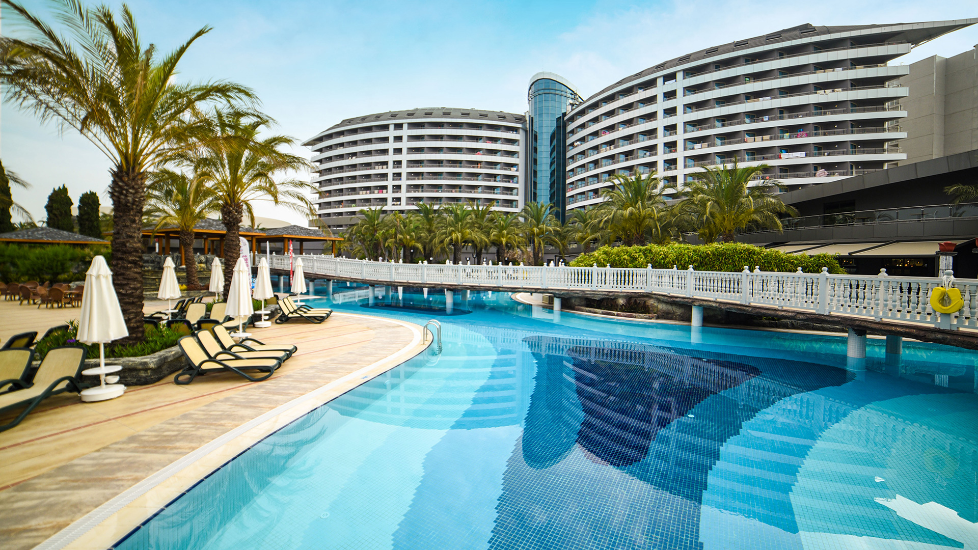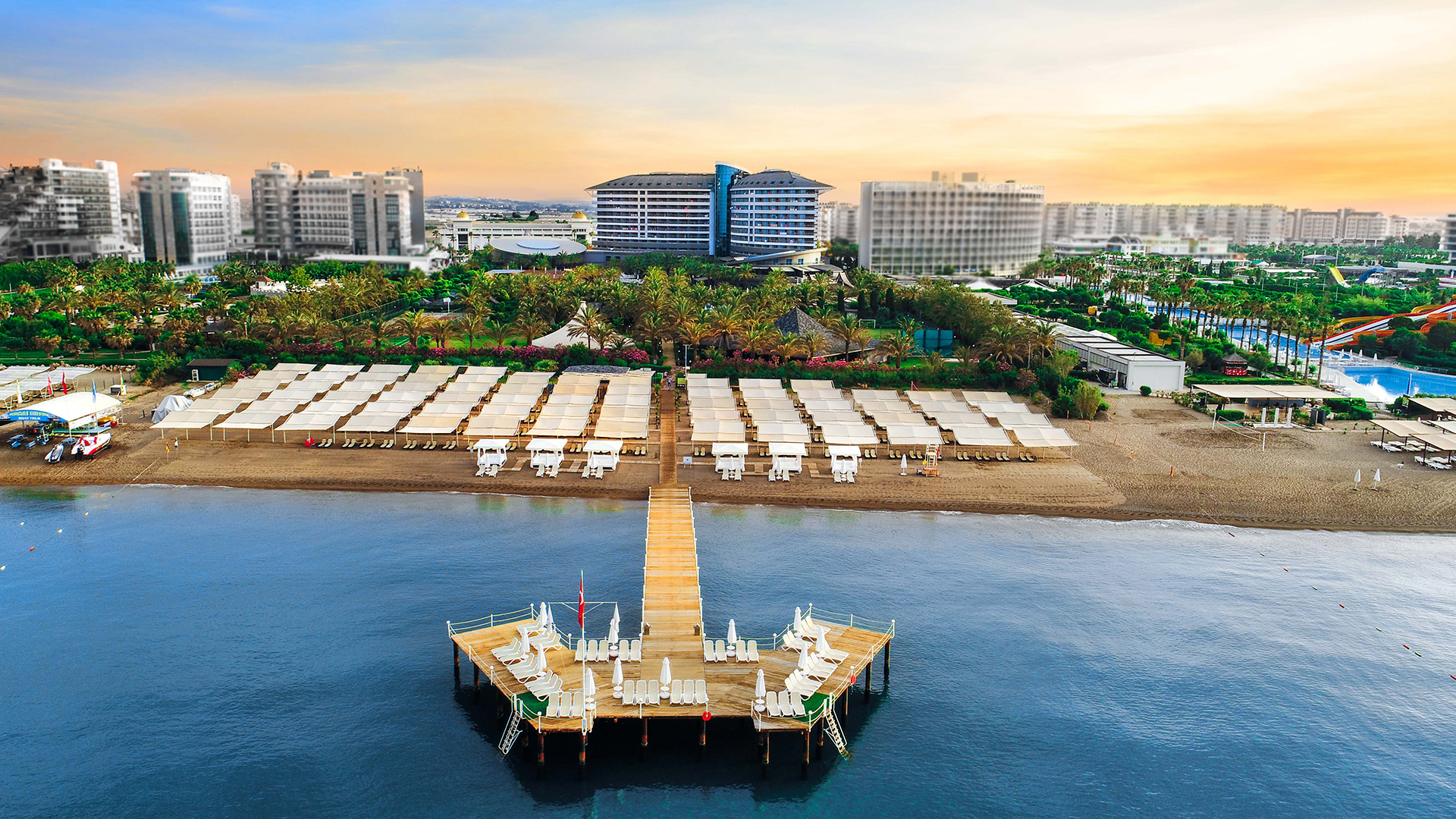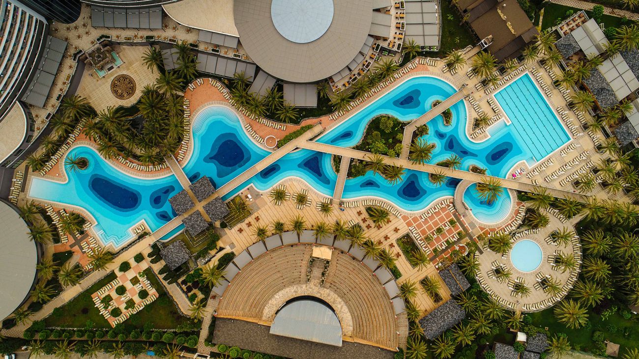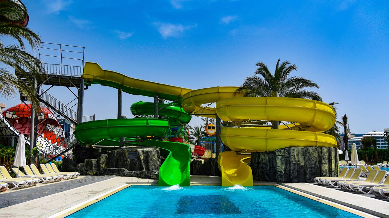 Основен ресторант, 4 a - лa - карт ресторанта - платени(с предварителна резервация), 10 бара, 7 открити и 1 закрит басейн, аквапарк с 9 водни пързалки, магазини, SPA & Wellness център, дискотека, конферентни зали.