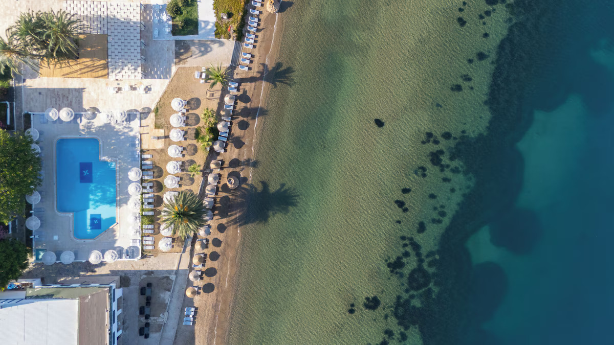 Намира се на 55 км от летище Бодрум, на 20 км от центъра на Бодрум, на 5 км от центъра на Тургутреис, в район Кадъкалеси, на брега на морето. Построен 1995 г., на обща площ от 14 000 м². Реновиран 2024 г.