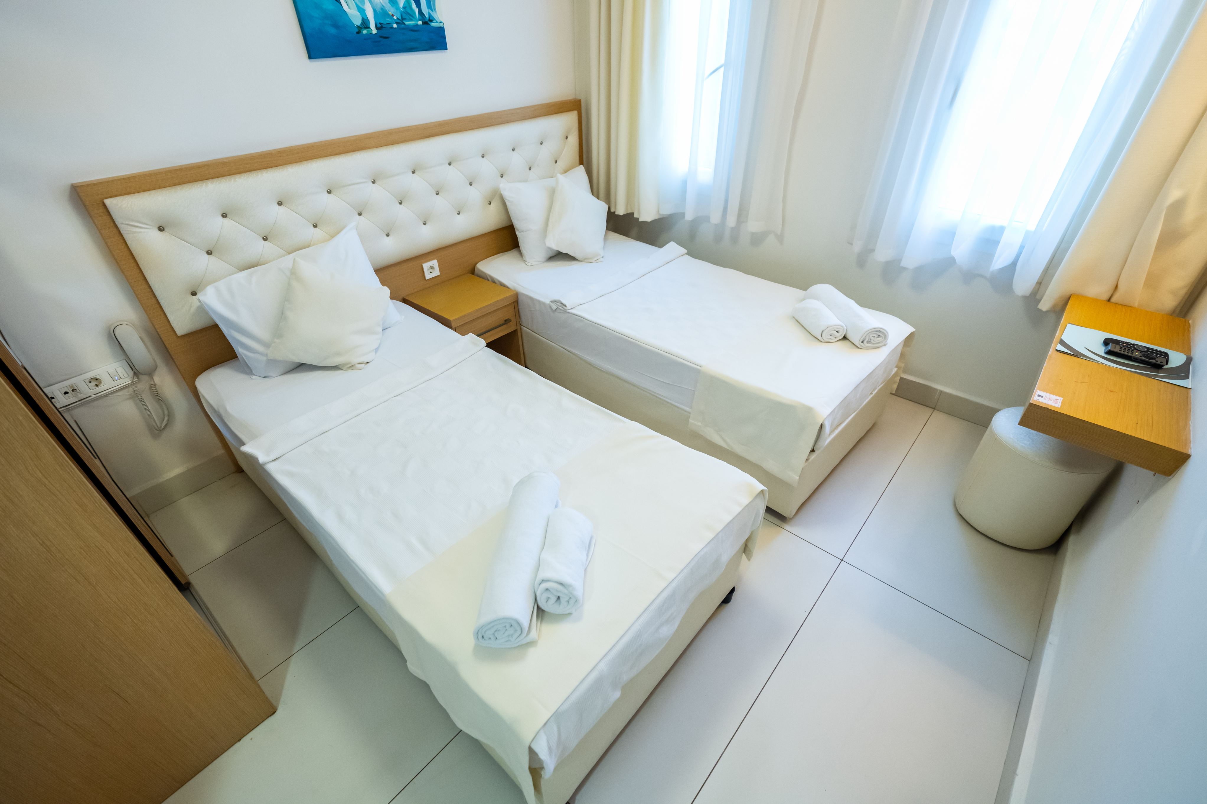 Хотелът разполага с общо 79 стаи, разположени в 3-етажна основна сграда, от които 72 Standard room (стандартни стаи без балкон - 16 м²), 1 Disabled Room (пригодени за хора с ограничена подвижност - 21 м²), 3 Suite Room (40 м²).Всички стаи са оборудвани с климатик, телевизор, телефон, баня с душ, сешоар, минибар (наличен само в деня на настаняване), сейф (безплатен).