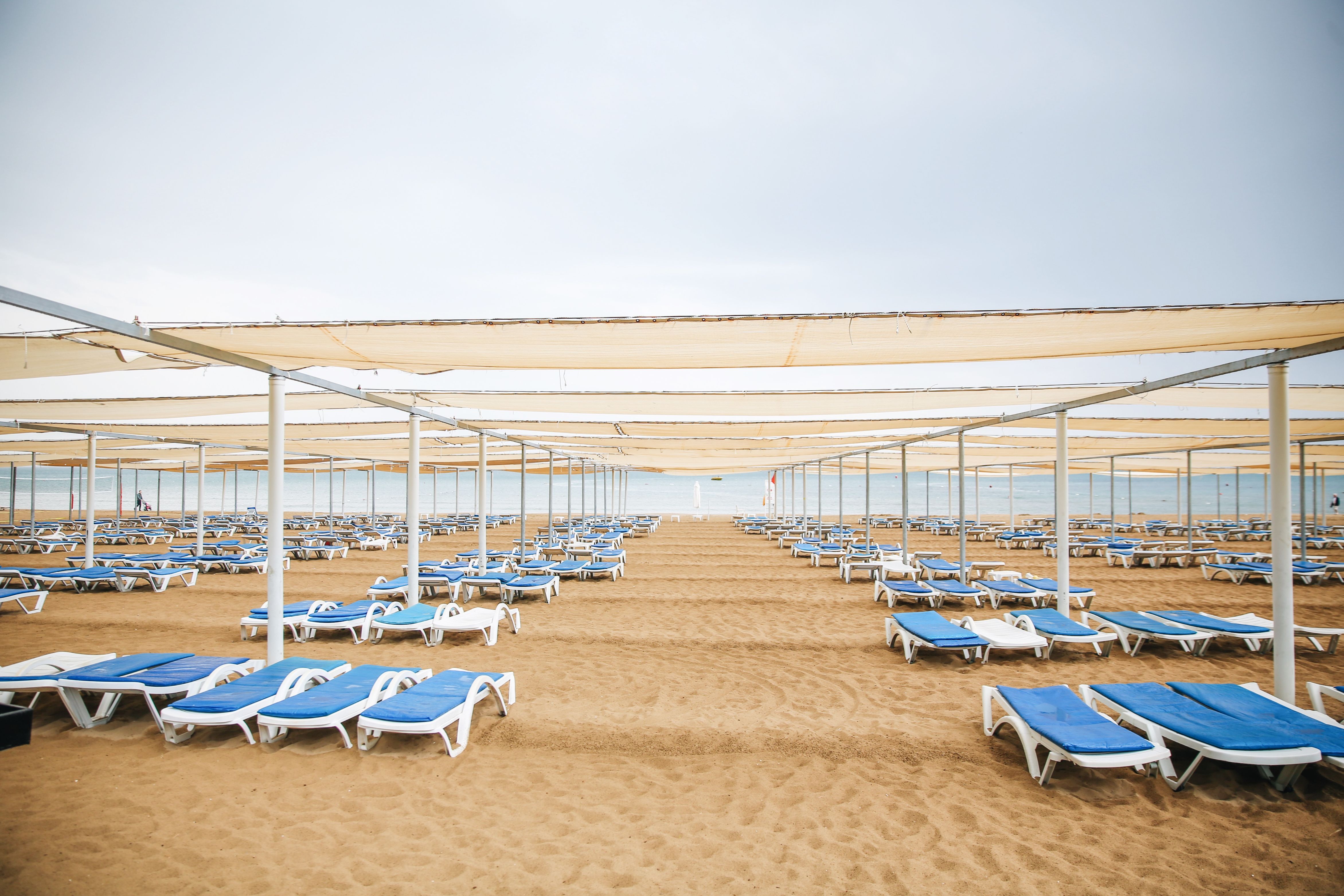 Собствен, пясъчен плаж. Шезлонги, чадържи, матраци на плажа и при басейна - безплатно.