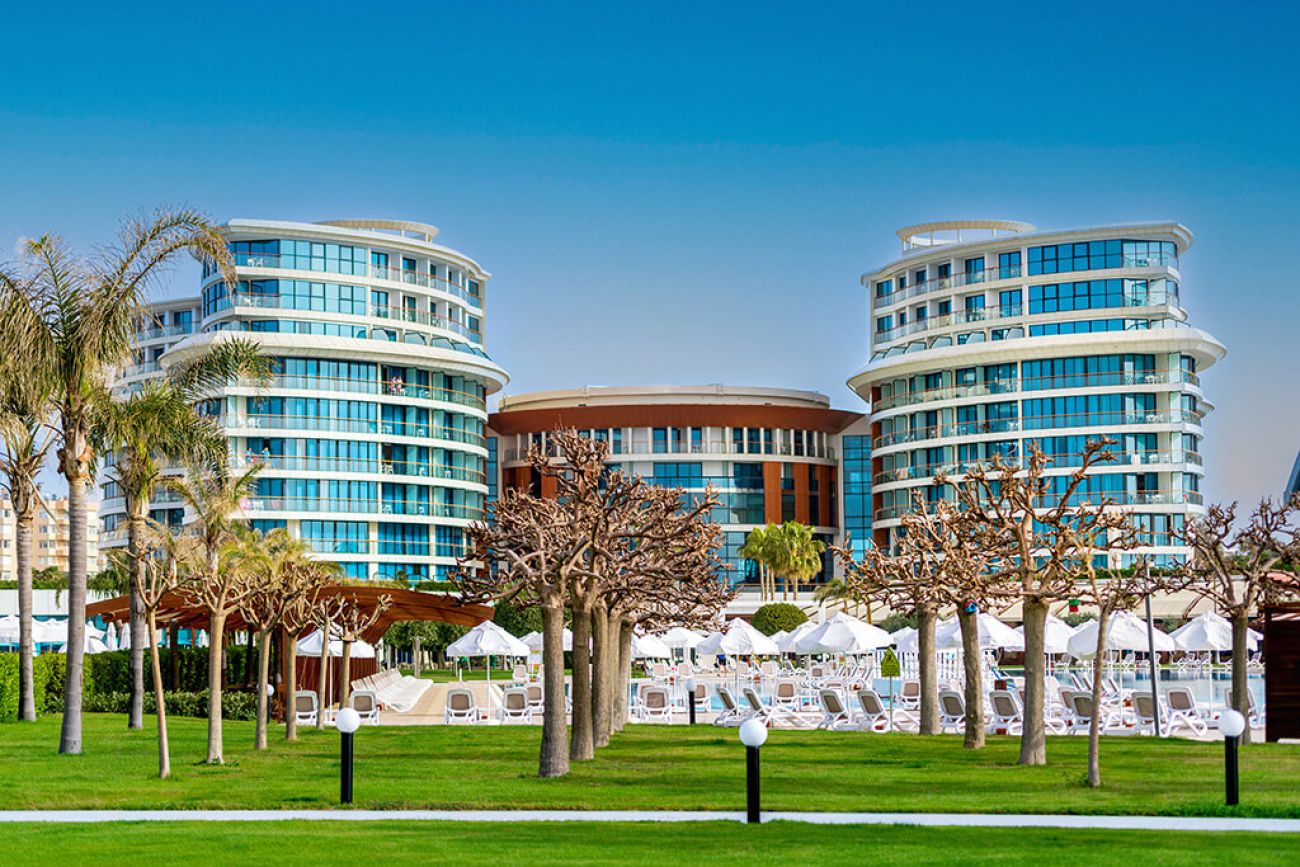 Намира се на 15 км. от летище Анталия, на 17 км. от центъра на Анталия, в района на Лара, на брега на морето. Построен през 2009 г., с обща площ 55 000 м2, последно реновиран през 2020 г.