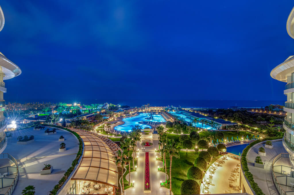 Основен ресторант, 2 а-ла-карт ресторанта (средиземноморски и стейк хаус – срещу допълнително заплащане, с преварителна резервация), 5 бара, сладкарница, 8 открити басейна, аквапарк със 9 водни пързалки, фитнес, СПА център с вътрешен басейн , магазини, 6 конферентни зали, Wi-fi интернет – на цялата територия на хотела.