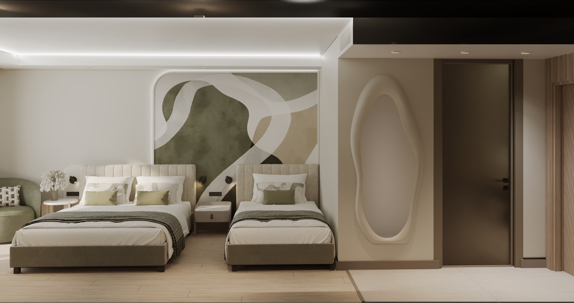 - При настаняване на 2 възрастни с 1 или 2 деца (DBL + 1 chd; DBL + 2 chd), третото и четвъртото легло винаги са допълнителни, тип разтегателни.