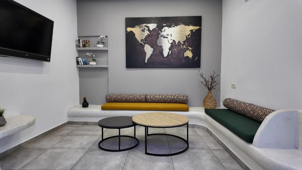 Местоположение: Хотелът се намира в сърцето на столицата Фира, на 100 метра от археологическия музий на Санторини и на 5 км. от летището.